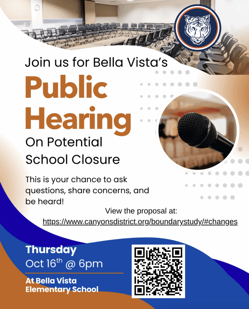 The Public Hearing for input on the proposed boundary changes will be held in Bella Vista’s Gym from 6:00PM – 7:00PM on October 16th. 6 – 6:30 p.m. — Open